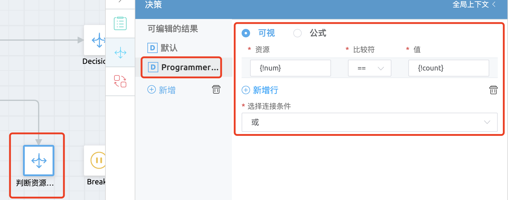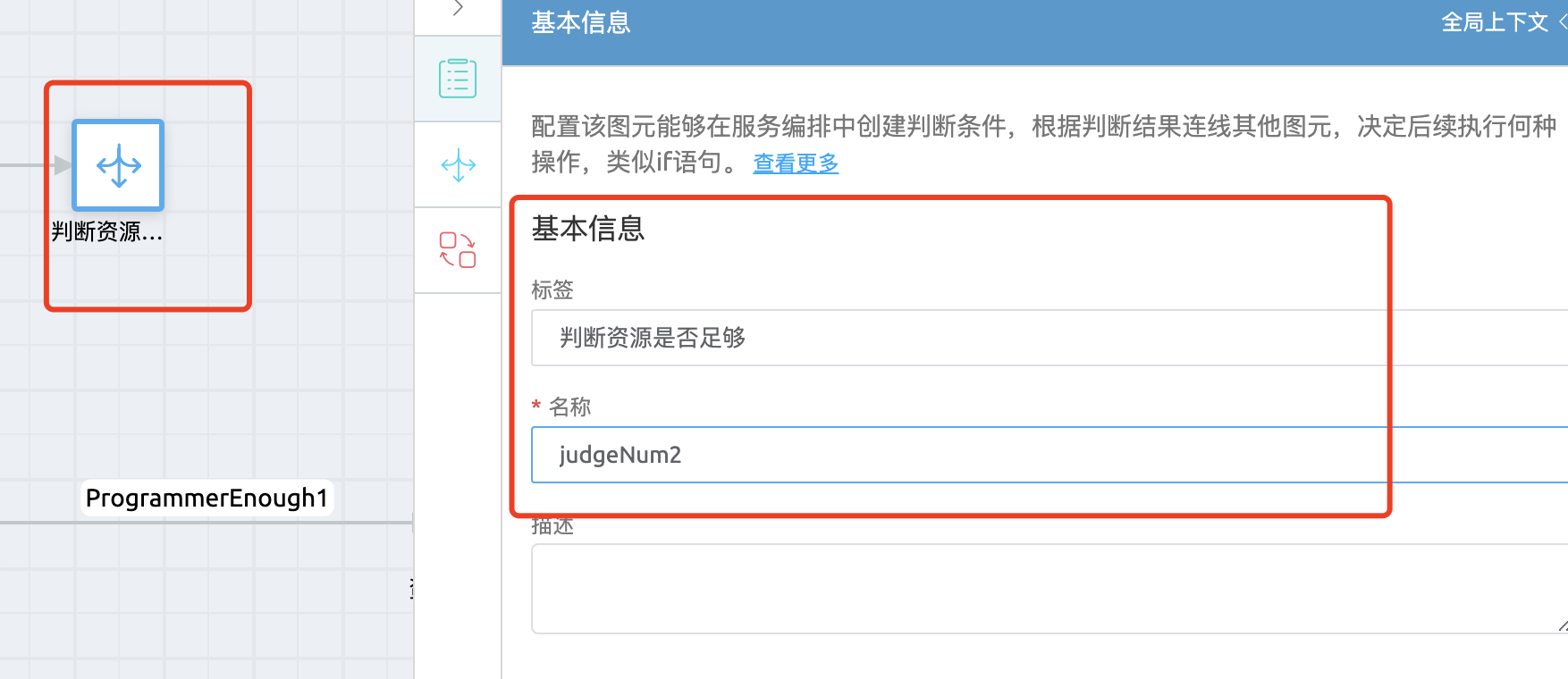 图元的入参和出参可以直接从「全局上下文」中拖拽过来。