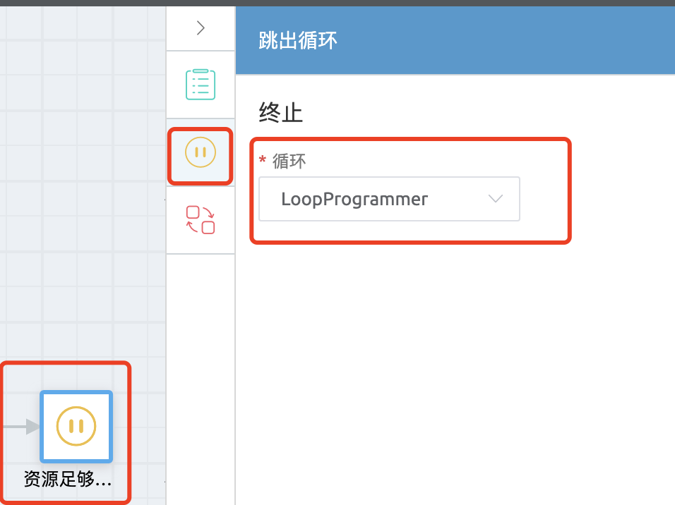 跳出循环设置,选择前面的循环图元LoopProgrammer。