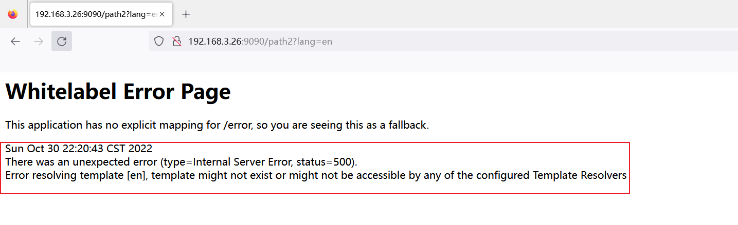 正常访问该url,出现http500 ,因为后台没有对应的en模板,所以报错,这个正常。