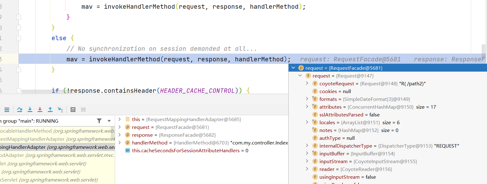 4、接下来调用RequestMappingHandlerAdapter#invokeHandlerMethod 通过反射的方法来处理请求