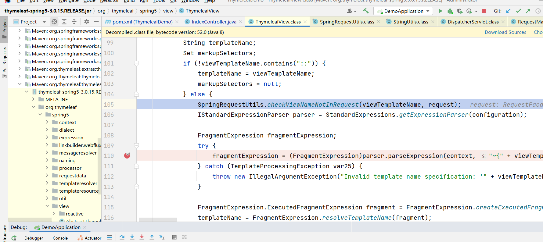 1、在org.thymeleaf.spring5.view.ThymeleafView#renderFragment 中添加了SpringRequestUtils.checkViewNameNotInRequest(viewTemplateName, request);