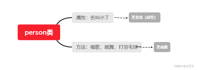 - 通常我们将代码块中第一层定义的变量(也就是类中函数体外的变量)叫类属性,如果是类函数(也称为实例方法)中定义的变量我们习惯叫它类变量。