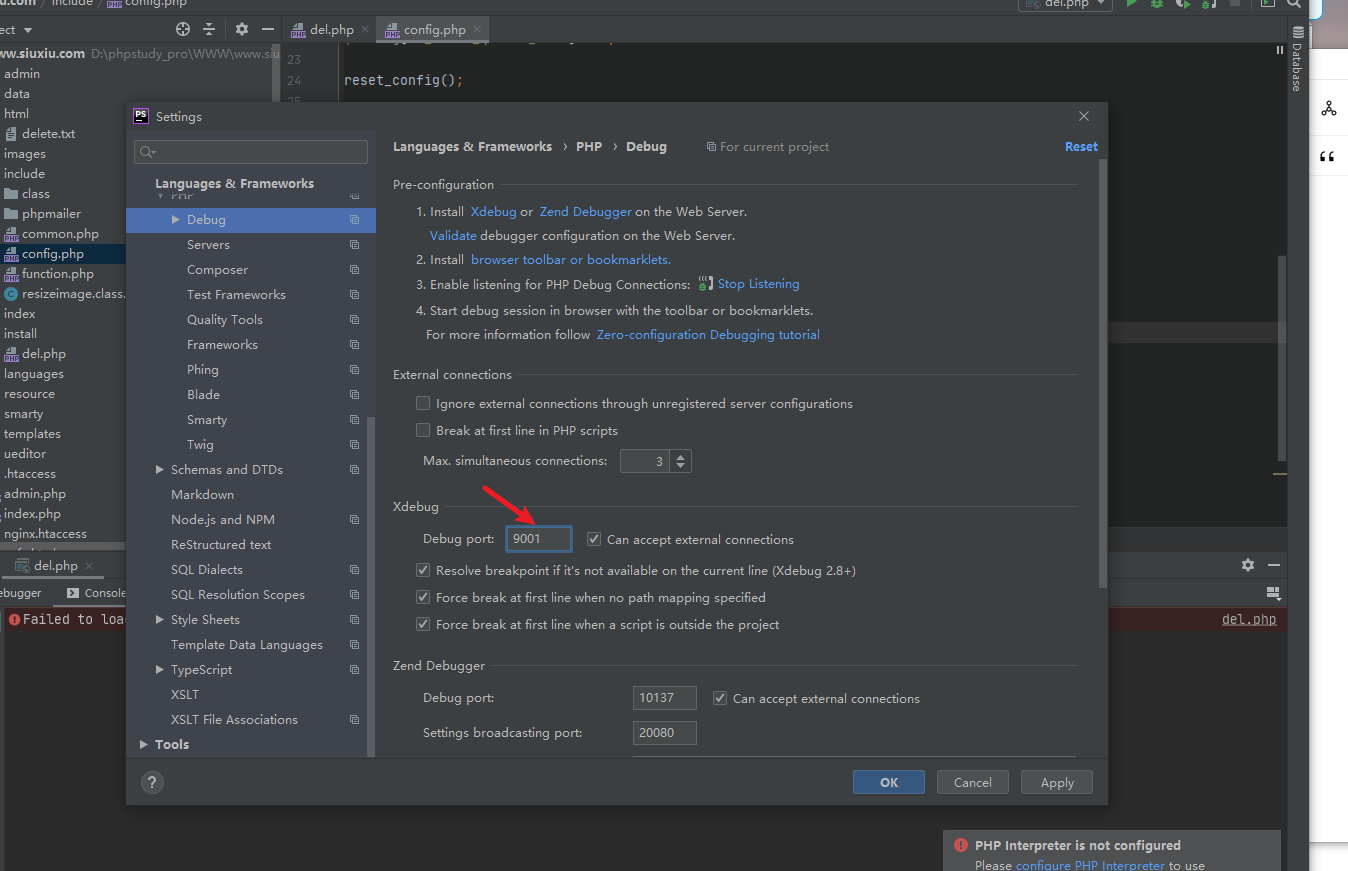 xdebug.remote_port=9001 ;远程主机与phpstorm通信的端口,必须确定