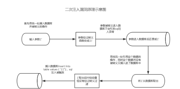 时引用了被插入的数据库数据,就可以实现闭合新发现的注入漏洞引发二次注入
