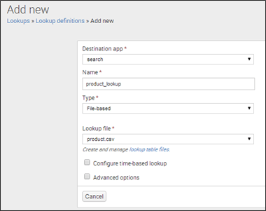 输入查找:Inputlookup 命令从指定的静态查找表中加载搜索结果。它扫描由文件名或表名指定的查找表。如果“append”设置为true,则查找文件中的数据将附加到当前结果集。对于 前充足:阅读product.csv查找文件。
