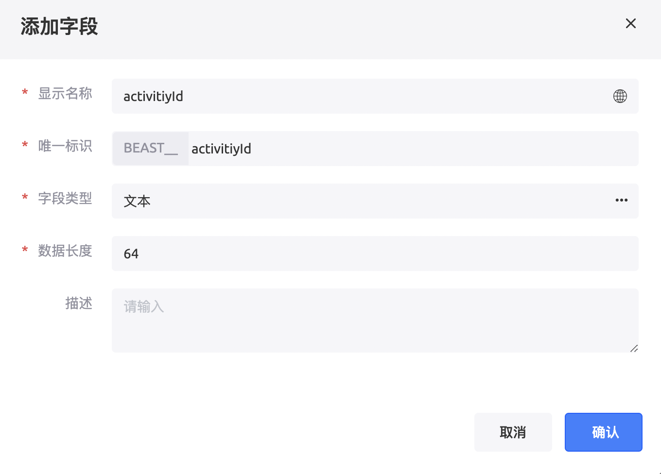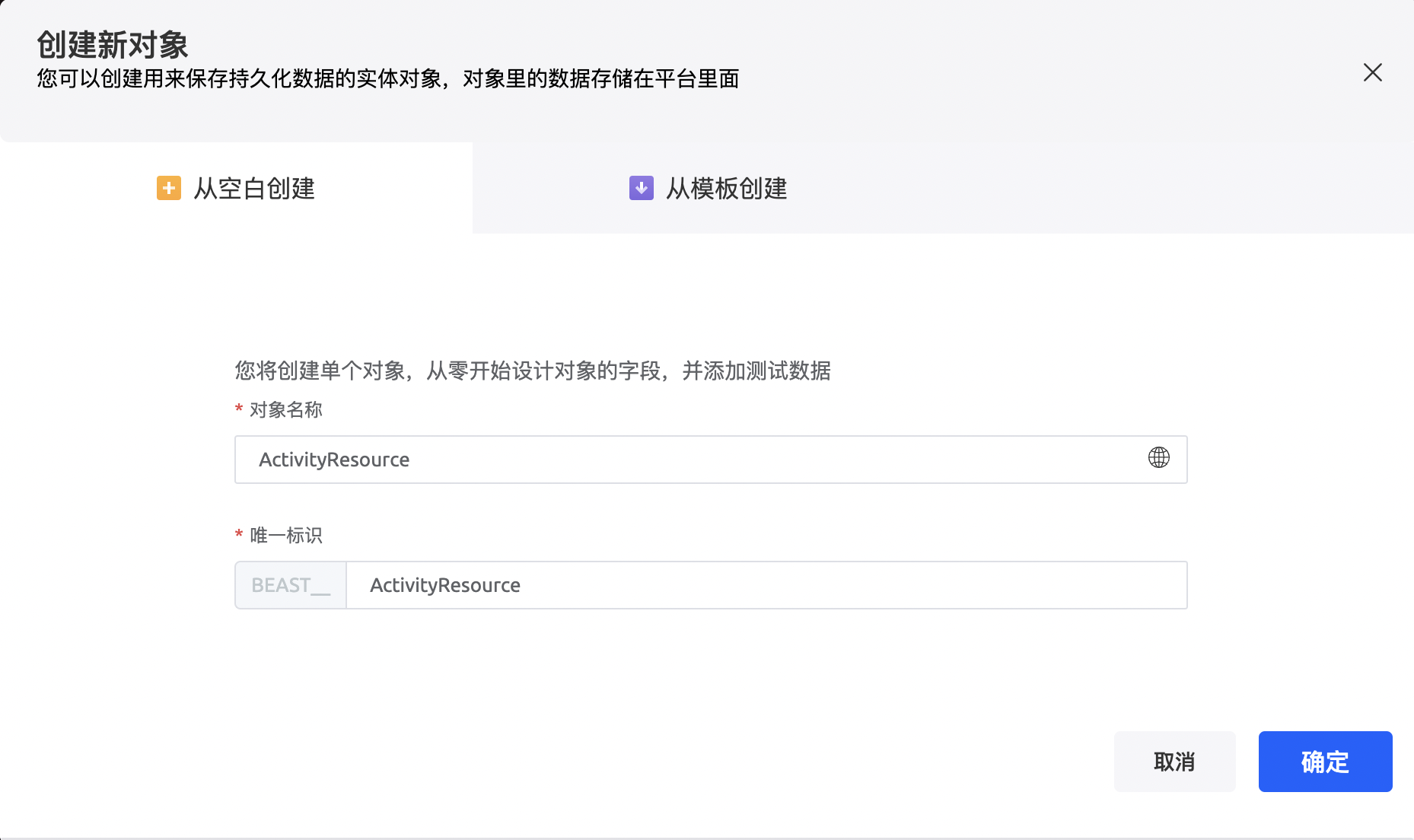 在创建脚本前,需要先创建脚本中操作的对象ActivityResource,对象的字段说明如下表1: