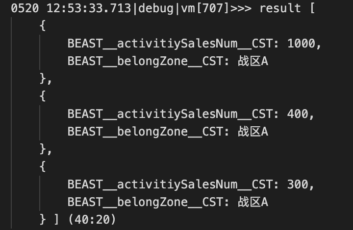 let sqlTest = "select BEAST__activitiySalesNum__CST, BEAST__belongZone__CST from BEAST__ActivityResource__CST "