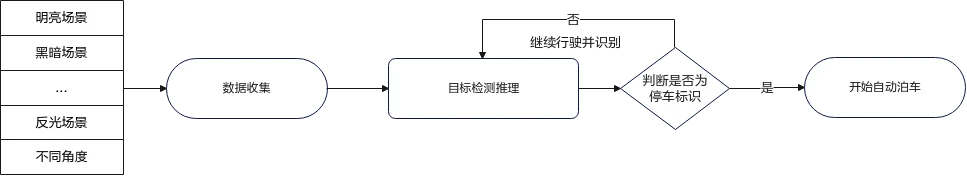 2、使用模型适配工具训练转换的om模型进行推理,判断当前标识是否为停车标志,“是”则开始自动泊车,“否”则继续行驶并收集数据。