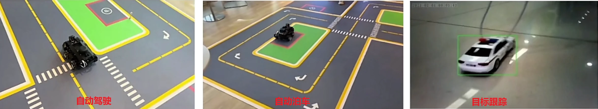 基于开发者套件的内置YoloV5神经网络模型的推理结果引导智能小车在模拟的复杂交通场景和更贴近实际的道路上行驶。