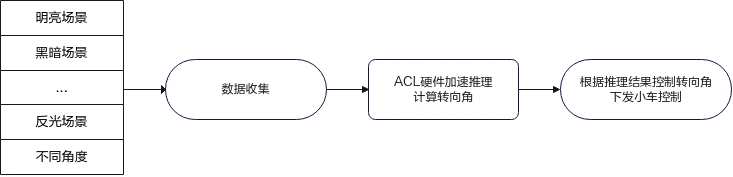 2、使用模型适配工具训练转换的om模型进行推理,计算转向角,最后根据推理结果下发指令控制小车转向。