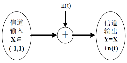 输入变量 X 和输出变量 Y 一个为连续信号,一个为离散信号。如下图所示的 AWGN 信道,输入是二进制对极信号,输出是叠加了高斯白噪声的连续信号。