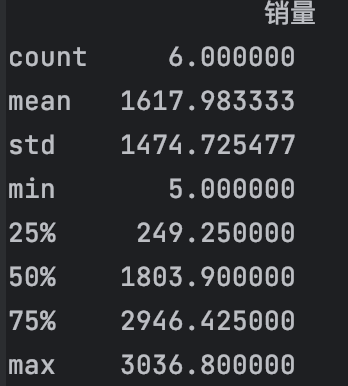# describe 函数:生成描述性统计数据,总结数据集分布的集中趋势,分散和形状。
