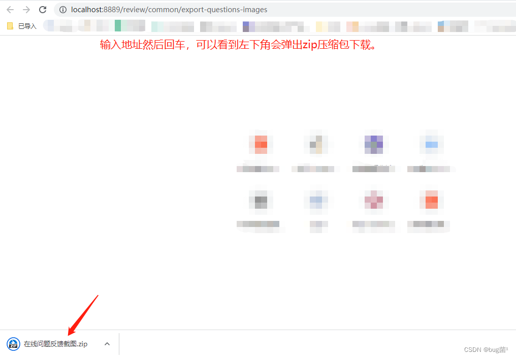 输入地址后,我们直接浏览器回车,我们可以看看到浏览器左下角会弹出一个xxx.zip的压缩包下载,这就证明我们起码成功了一半。