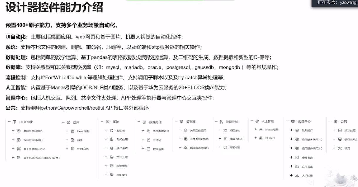 Ul自动化:主要包括桌面应用、web网页和基于图片、机器人视觉的自动化控件;