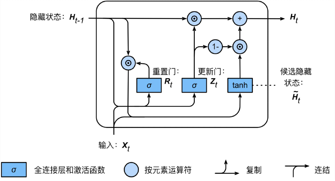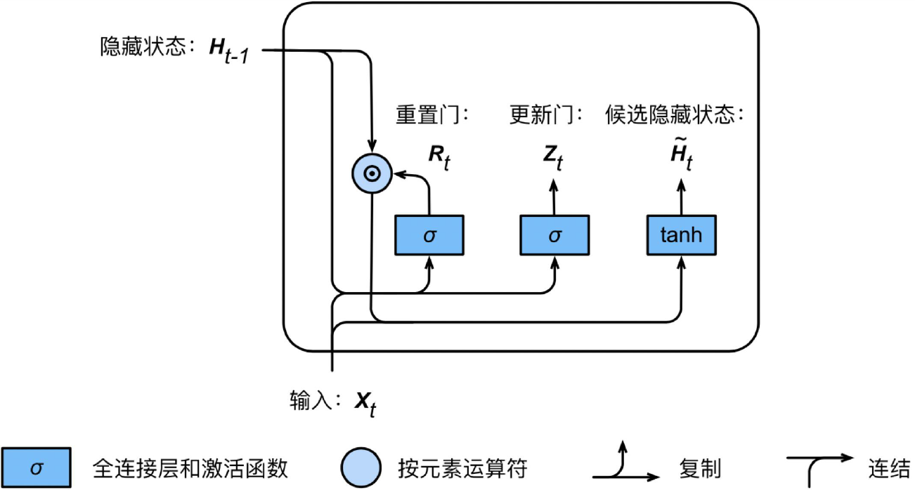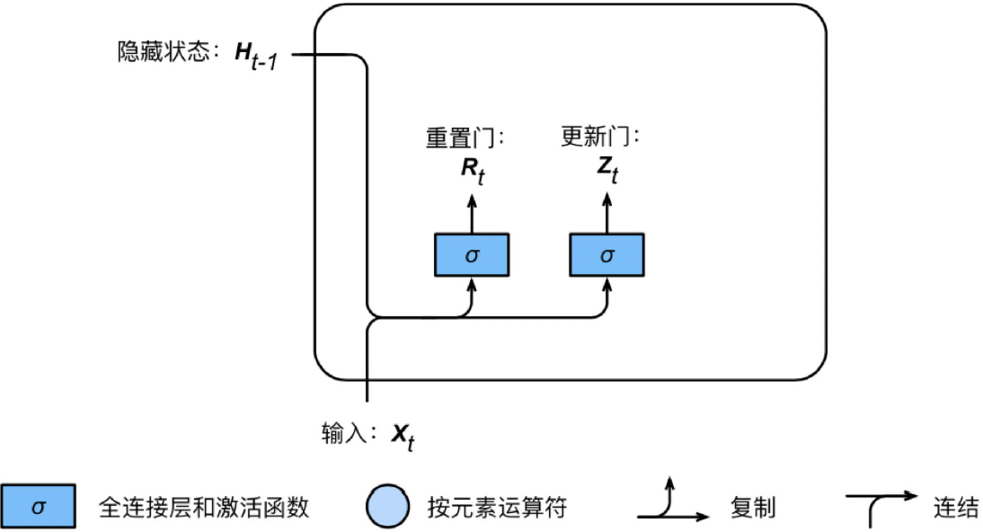 RtZt=σ(XtWxr+Ht−1Whr+br)=σ(XtWxz+Ht−1Whz+bz)