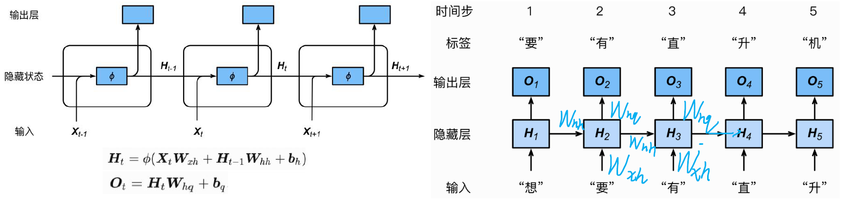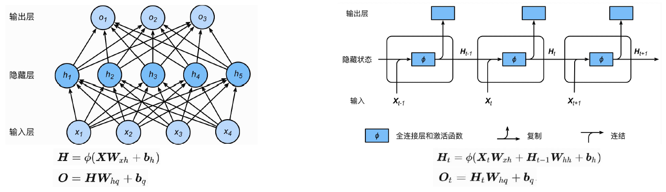 Ht=ϕ(XtWxh+Ht−1Whh+bh)
