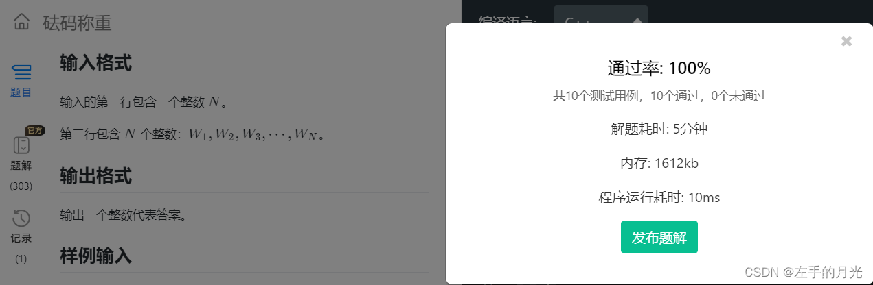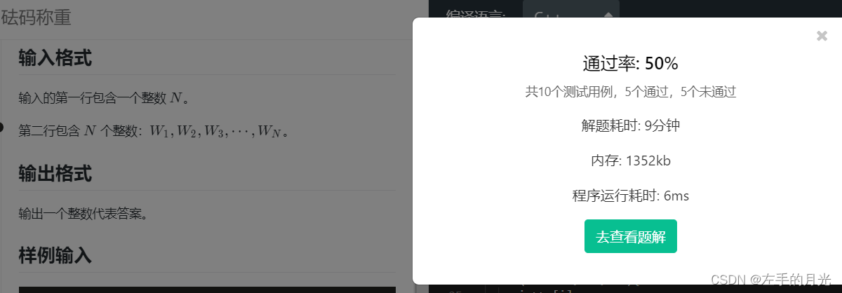 对于所有评测用例,N1≤N≤100,N个砝码总重不超过 100000。