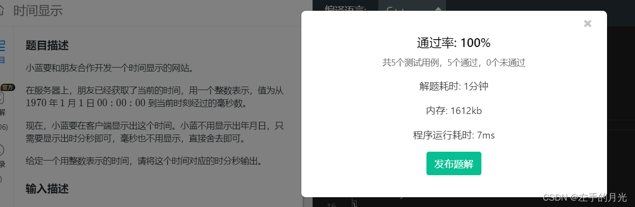 现在,小蓝要在客户端显示出这个时间。小蓝不用显示出年月日,只需要显示出时分秒即可,毫秒也不用显示,直接舍去即可。