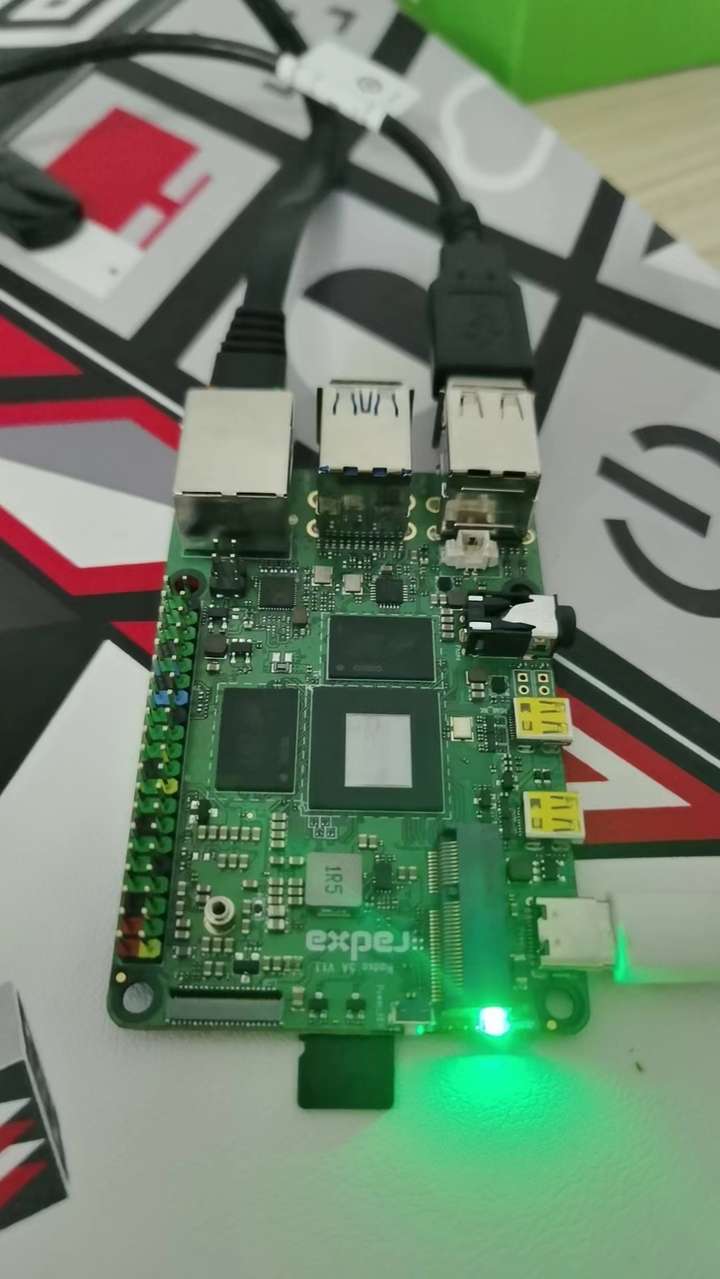 刷完了之后,将SD卡安全拔出,插入刚才Rock5A扁扁的SD插槽,分别接上Type-C线(另一头接笔记本电脑),网线(另一条接路由器LAN口):