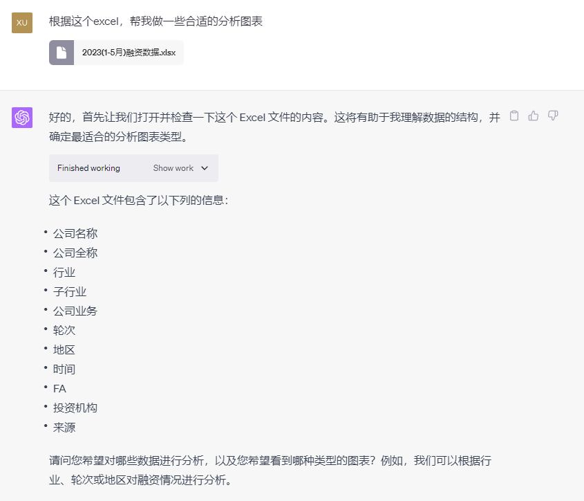 在这篇文章中,我们将探索如何创建一个 Code Interpreter Demo。提交一个2023年1-5月份的融资记录数据,让它来帮我们分析一下这些数据。