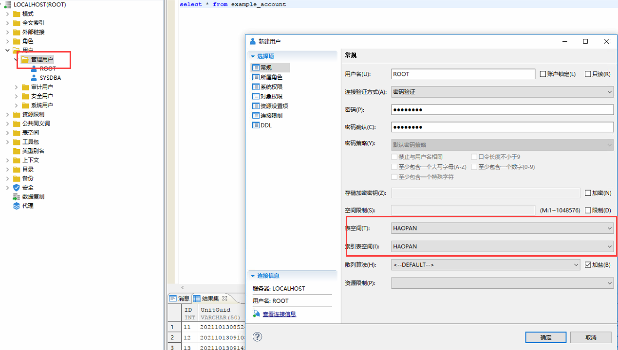 创建表空间及用户,最好是一个库对应一个用户一个表空间,创建用户时需要指定对应表空间