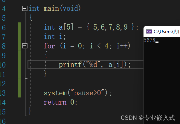 - 输出:int a [ 5 ]= { 5,6,7,8,9 };