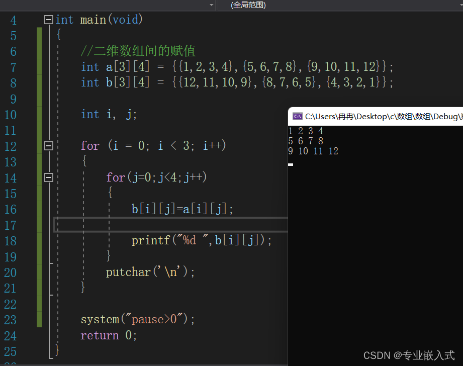 二维数组的初始化,下标,遍历,及数组间的赋值