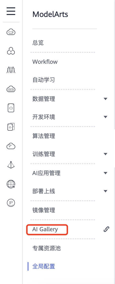 图3-3:ModelArts管理控制台的“AI Gallery”入口