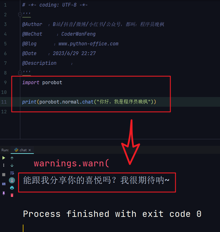 print(porobot.normal.chat("你好,我是程序员晚枫"))