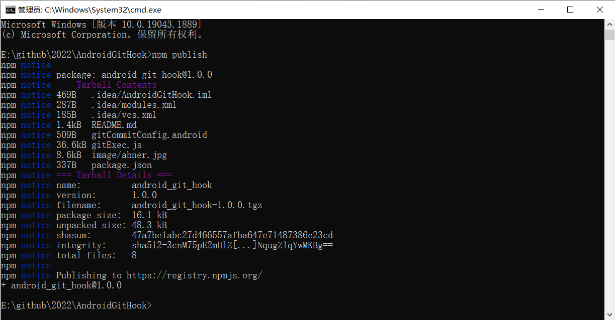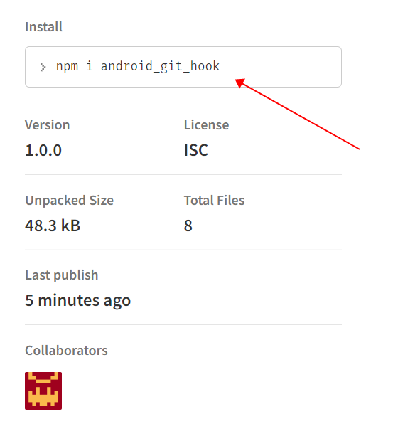 使用者更新到最新版本,执行下面的命令即可,android_git_hook为你的package.json文件中的name。
