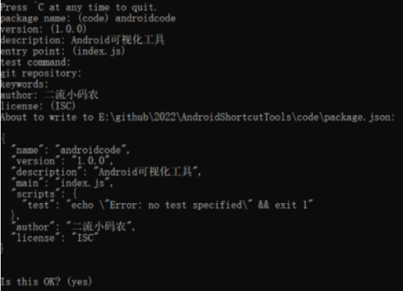当执行npm init时,会按照步骤,让输入很多东西,如果你不想一步一步输入,每次直接回车即可,反正也是可以修改的。