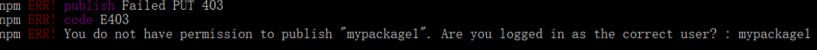 如果报错:'You do not have permission to publish "mypackage1". Are you logged in as the correct user?'