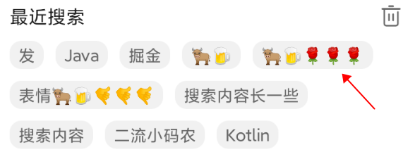 拿到searchLayout控件之后,调用setOnTextSearchListener方法即可,第一个方法是搜索内容发生变化会回调,第二个方法是,点击了软键盘的搜索按钮会回调,如果要在最近搜索里展示,直接调用doSearchContent方法即可。
