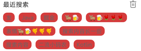 SearchList其实也没啥好说的,也是一个组合View,使用的是上下两个RecyclerView来实现的,至于流失布局,采用的是google提供的flexbox,设置布局管理器即可。