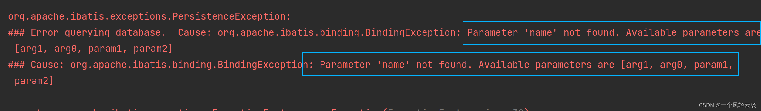 异常信息描述了:name参数找不到,可用的参数包括[arg1, arg0, param1, param2]