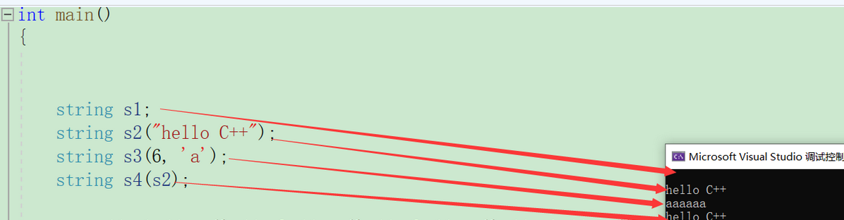 string(size_t n, char c)——string类对象中包含n个字符c;
