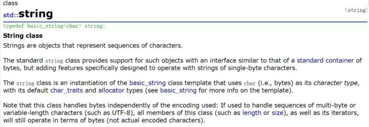 标准的字符串类提供了对此类对象的支持,其接口类似于标准字符容器的接口,但添加了专门用于操作单字节字符字符串的设计特性。