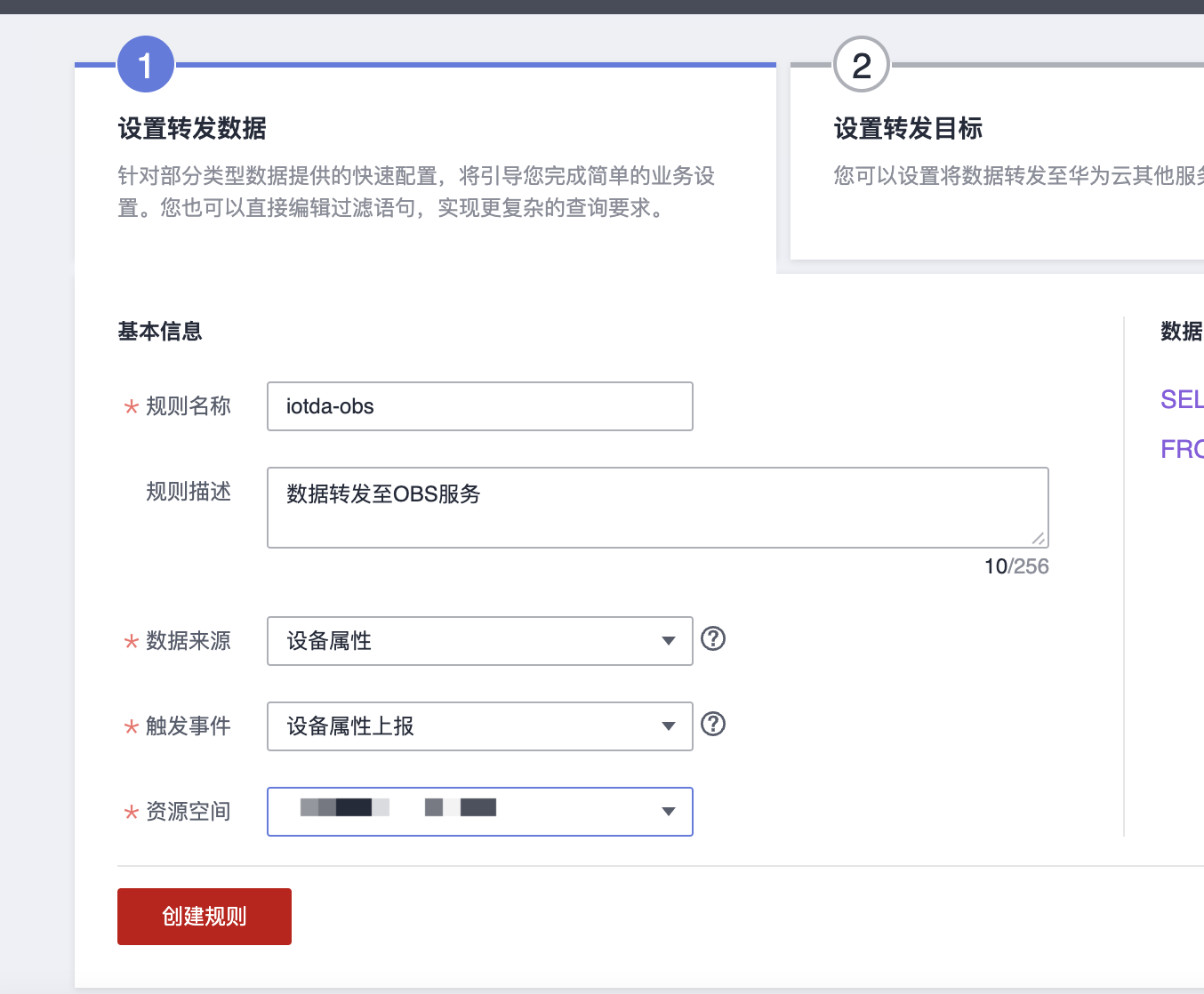 1、选择左侧导航栏的“规则>数据转发”,单击“创建规则”。