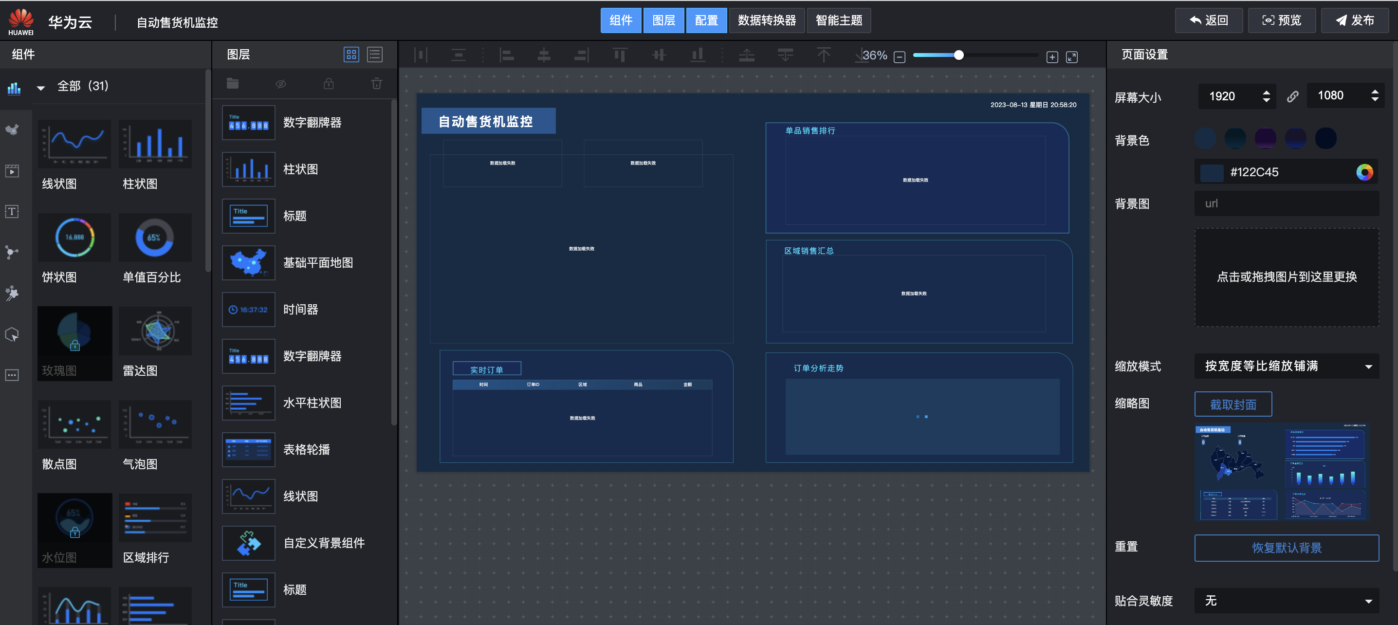 无人零售模式下,“IoT+鸿蒙”实现零代码搭建自动售货机监控大屏的可能性摸索【华为云IoT+鸿蒙】