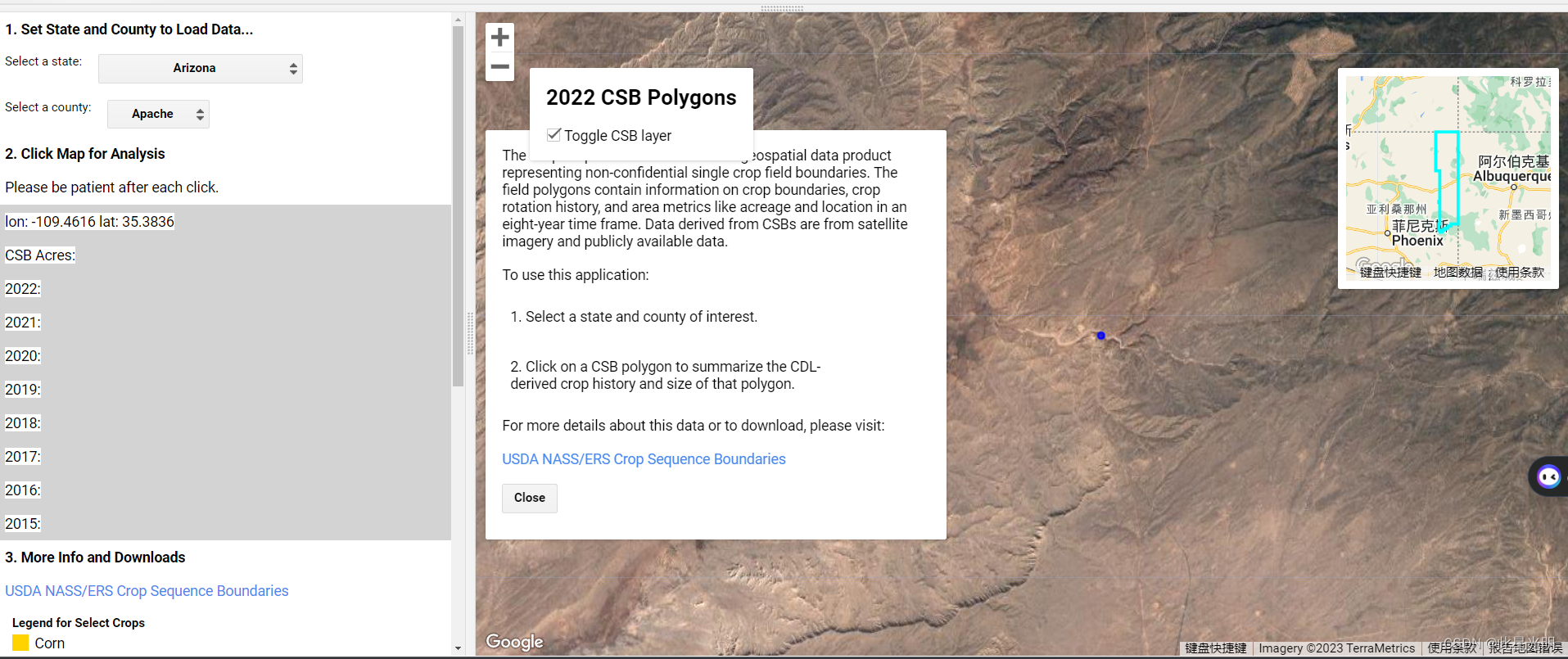 代码链接Sample code: https://code.earthengine.google.com/?scriptPath=users/sat-io/awesome-gee-catalog-examples:agriculture-vegetation-forestry/USDA-CSB-APP