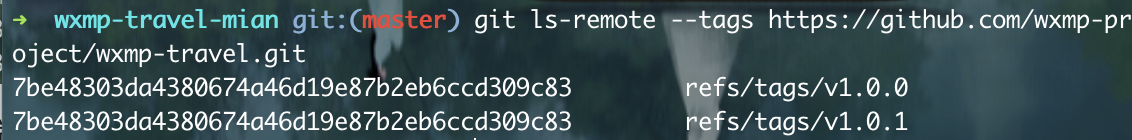 运行之后,返回了 wxmp-travel 仓库中的全部 tags