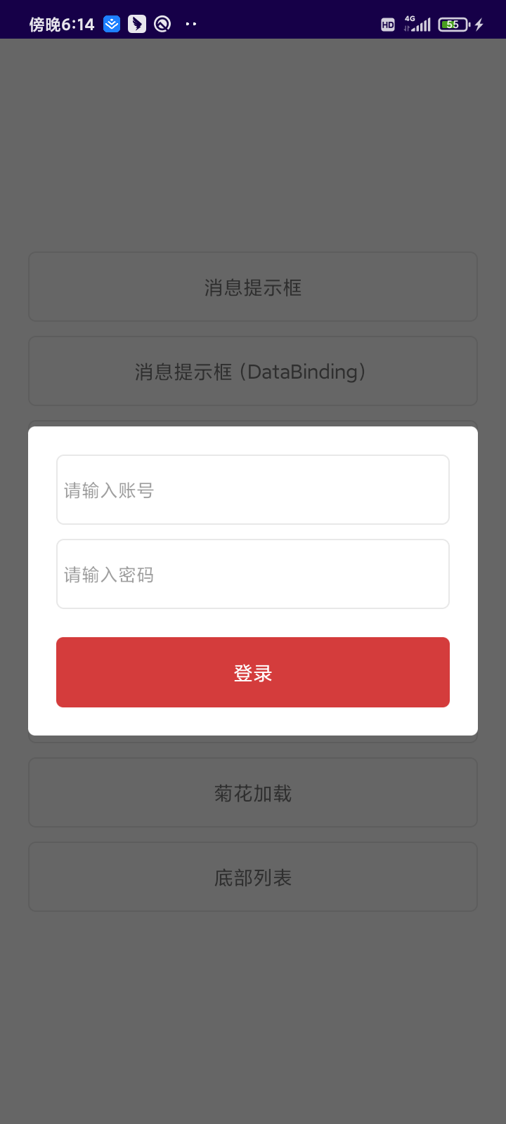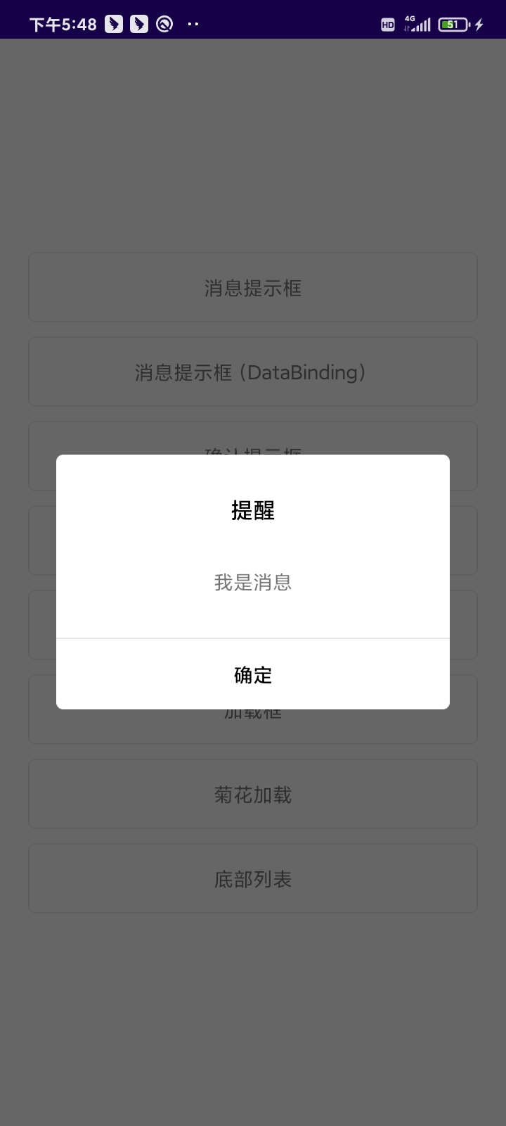 通过以上的代码,我们就实现了一个Dialog的弹出,addLayout方法传递视图,set扩展函数进行获取View和绑定数据,这样的一个简单的封装,我们就实现了Dialog的扩展操作,针对不同的Dialog样式,传递不同的xml视图即可。