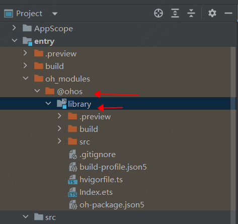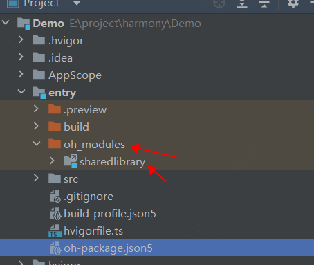 执行以上功能之后,就会映射到主Module,entry的oh_modules目录下: