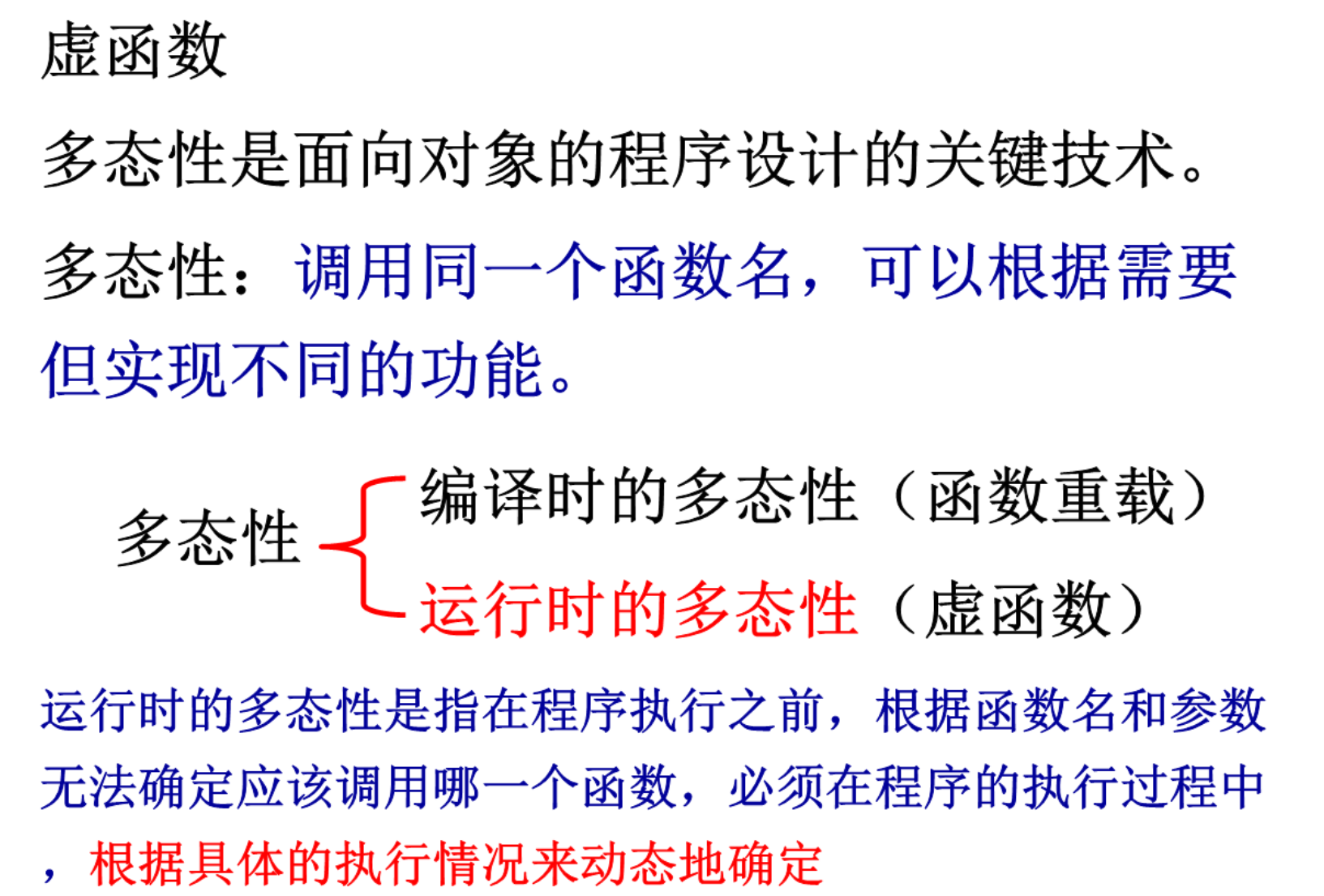 多态是面向对象编程的主要特征之一,C++中虚函数的唯一用处就是构成多态。C++提供多态的目的是:可以通过基类指针对所有派生类(包括直接派生和间接派生)的成员变量和成员函数进行“全方位”的访问,尤其是成员函数。