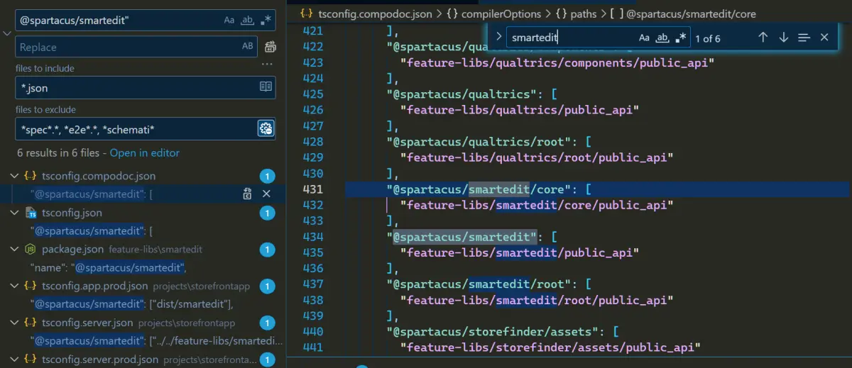 在 tsconfig.json 文件里能找到 @spartacus/smartedit 的准确实现路径:feature-libs/smartedit/public_api