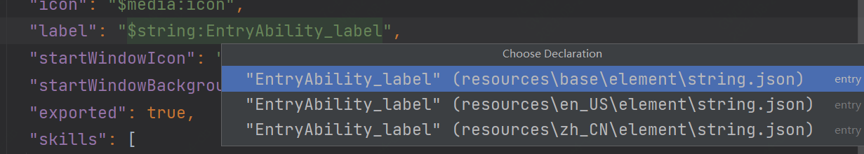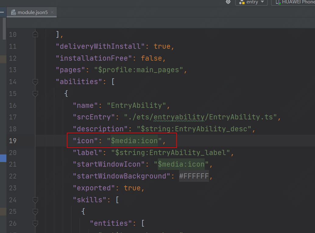 和更改应用名字的位置一样,也是更改作为主入口的UIAbility,更改位置如下: