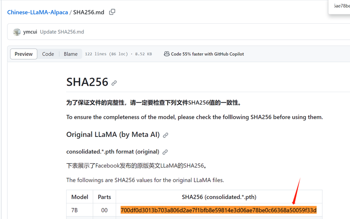 SHA256 的 models\7B\consolidated.00.pth 哈希: