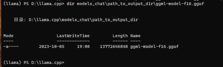 结果写到了 models_chat\path_to_output_dir\ggml-model-f16.gguf 文件中:13G左右。