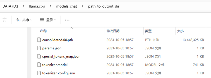 合并好的模型放到了 models_chat/path_to_output_dir 目录:consolidated.00.pth